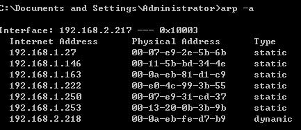 arp -s 192.168.1.250 00-07-E9-31-CD-37